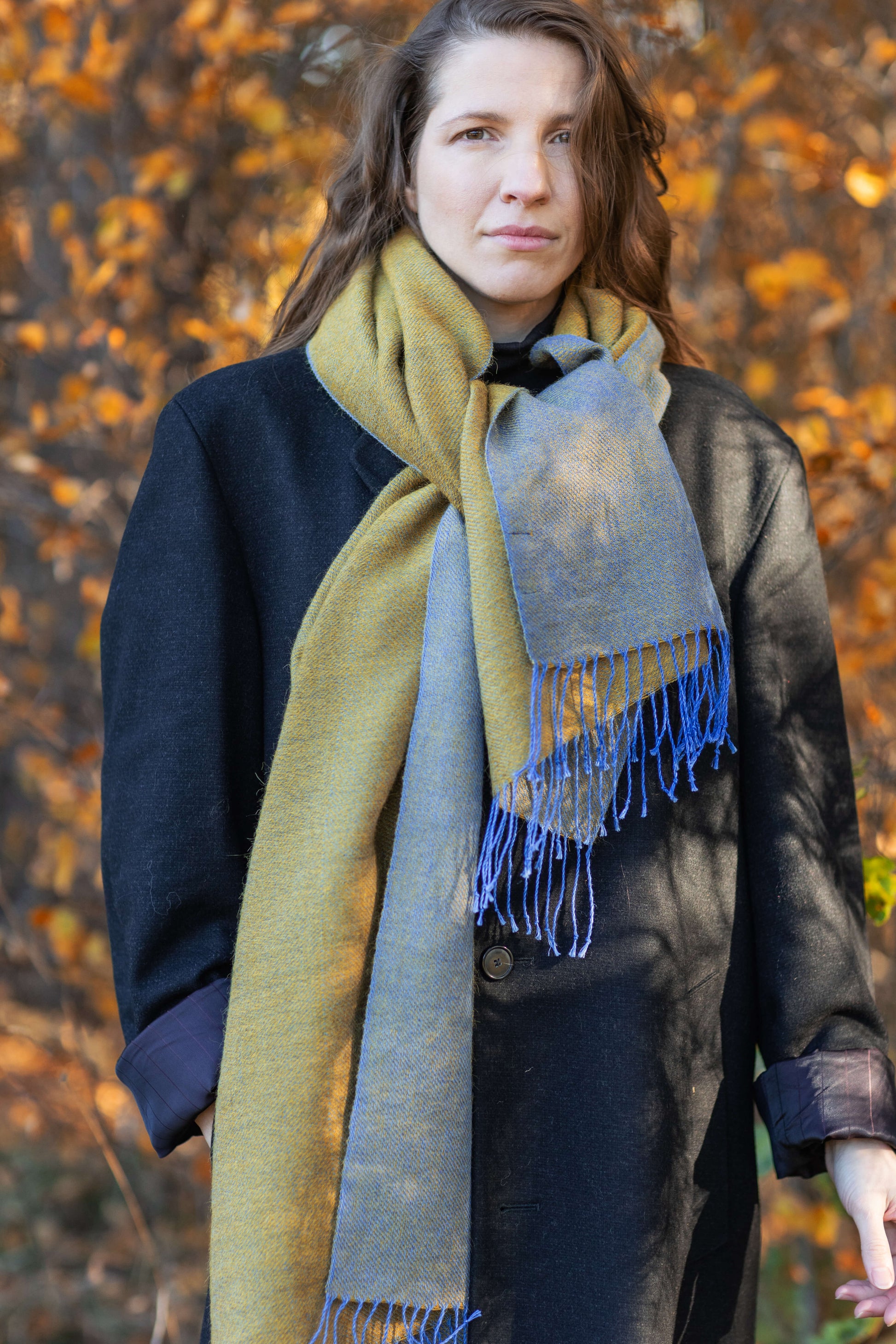 Double-sided linen & alpaca scarf EARTH