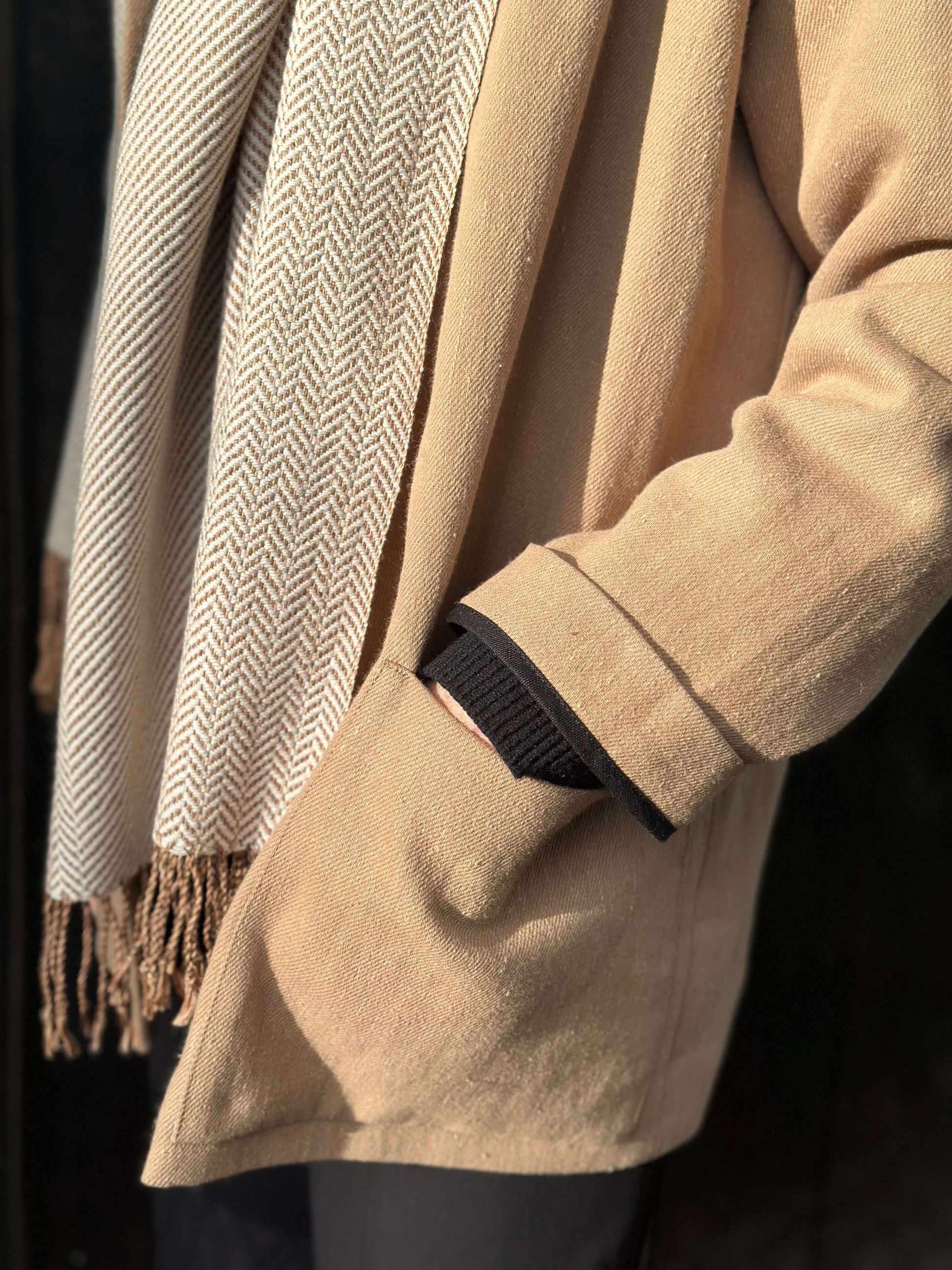 Finish: natural fringes, approximately 1.5-2 cm in length secured by zigzag sewing stitches or hand-twisted 8 cm fringes