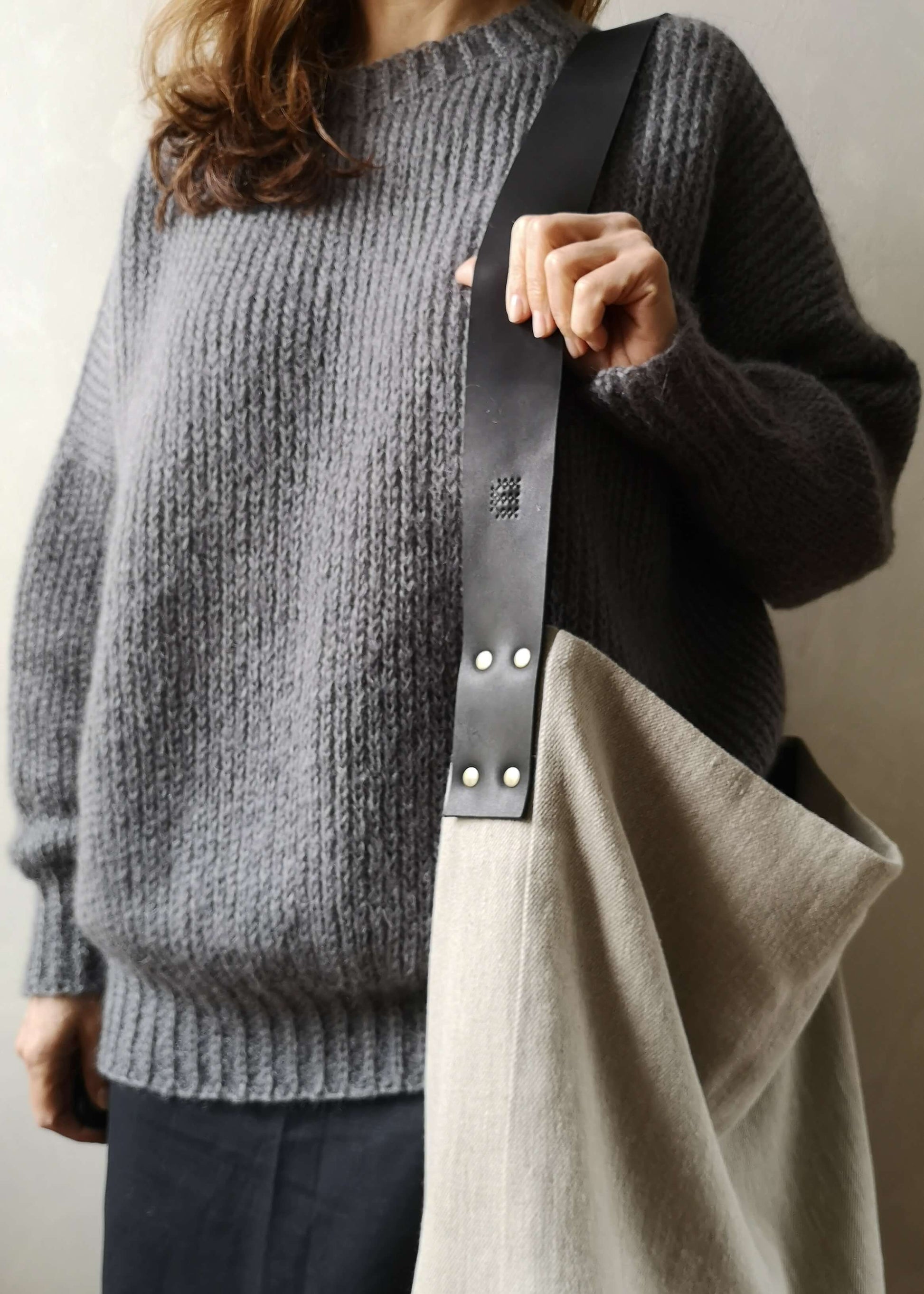 Hand-wash gently in lukewarm water using a mild detergent without bleach additives. The water temperature must not exceed 40 °C. Avoid soaking the bag, and do not wash the linen bag together with the wool belt handle, as wool may slightly shrink and release color.